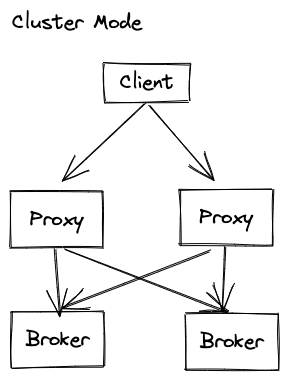 While in Cluster mode, Proxy is an independent cluster that communicates with Broker with remote procedure call.